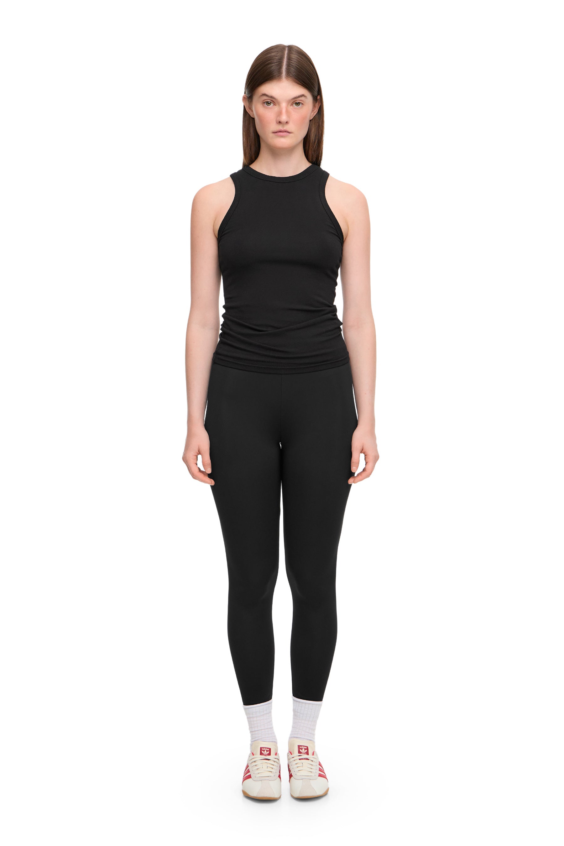 Легінси облягаючого крою. Висока посадка. Мають резинку на поясі. Тканина матова, мʼяка та приємна до тіла.